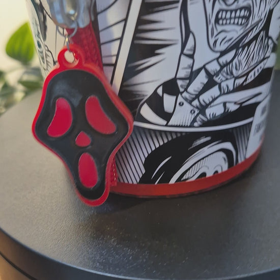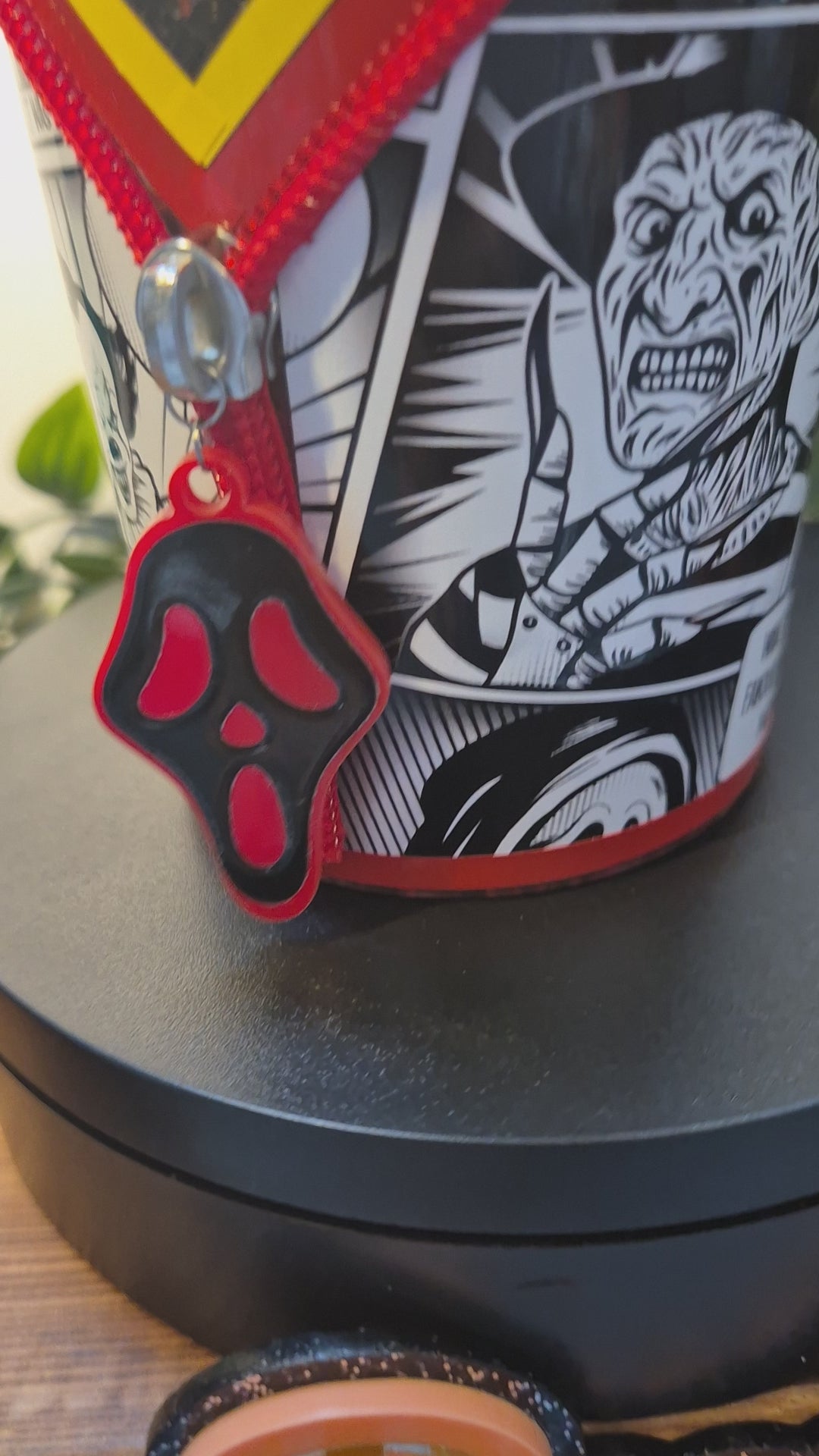 24oz comic book style zipper tumbler. Comes with detailed lid and red spiral straw.