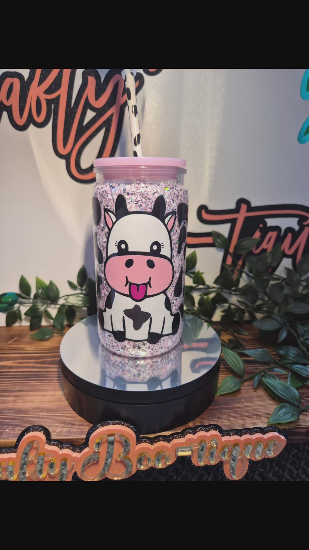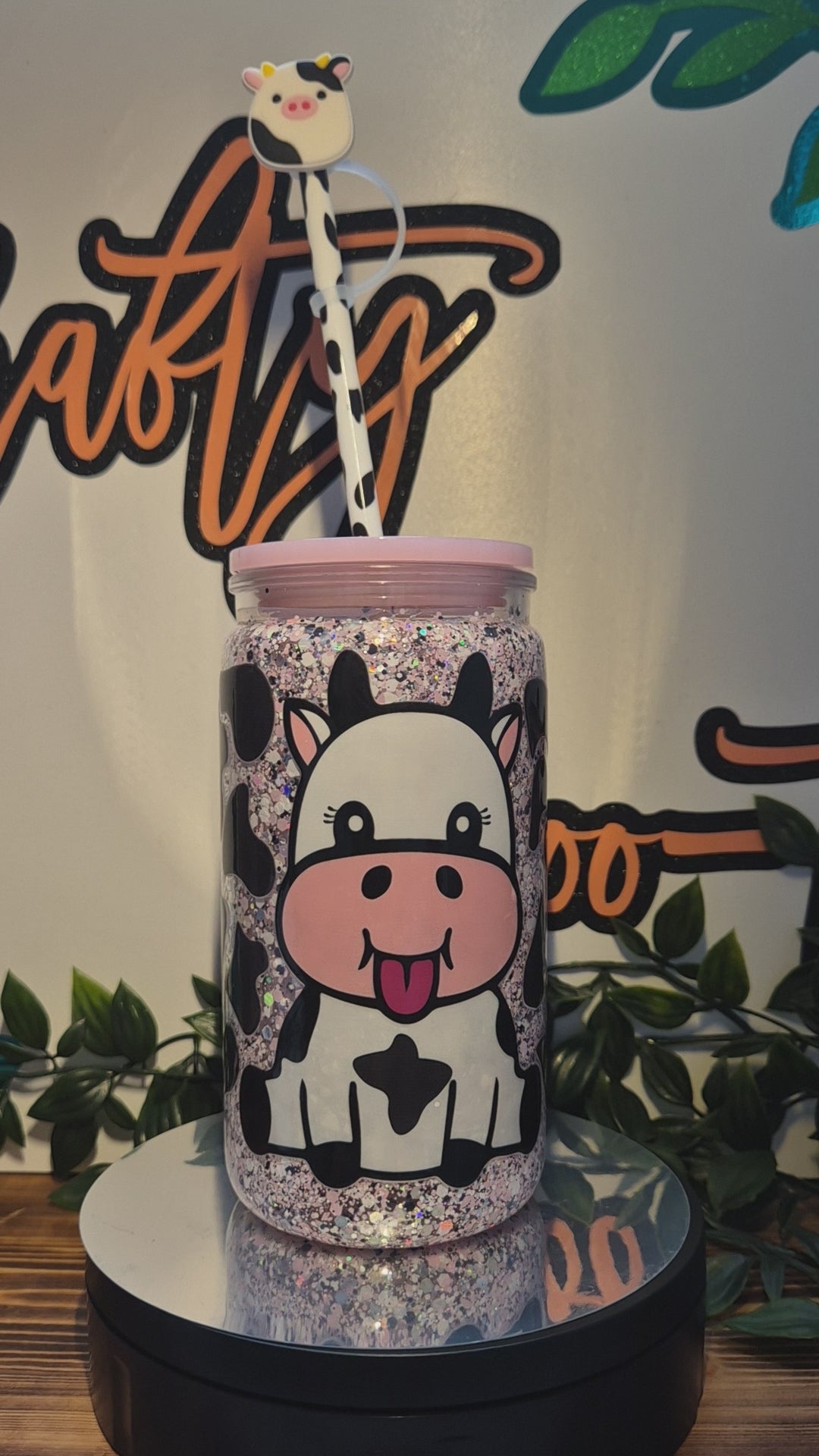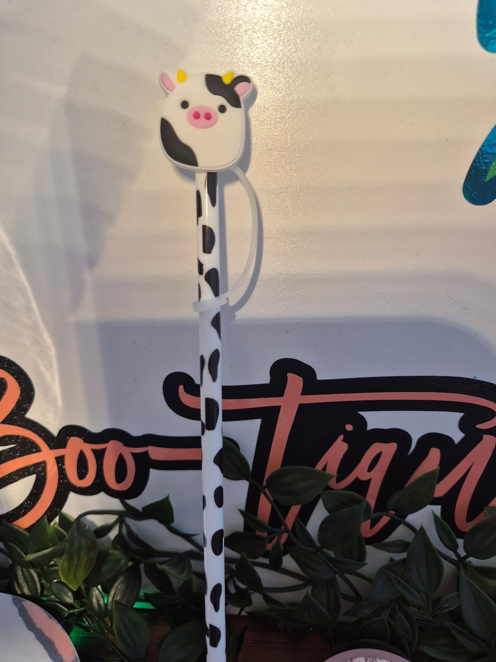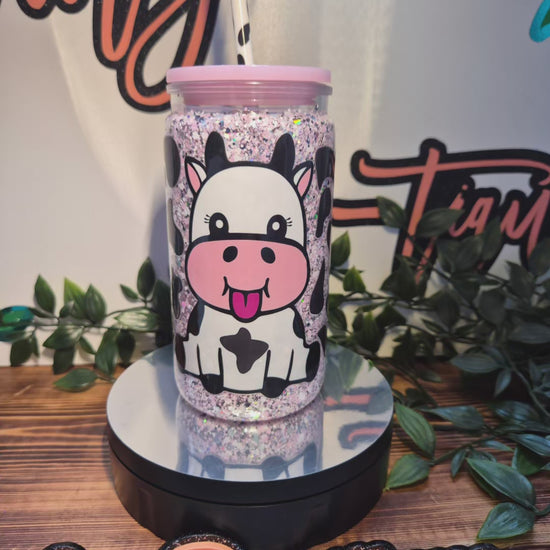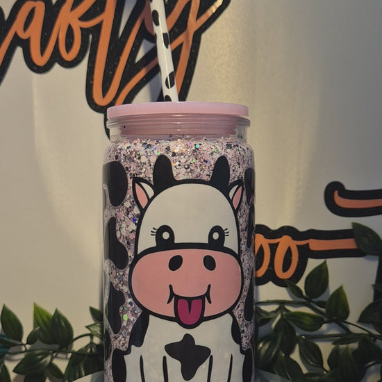 Cute Cow No Globe Libby Cup. With Matching Straw & Straw Topper