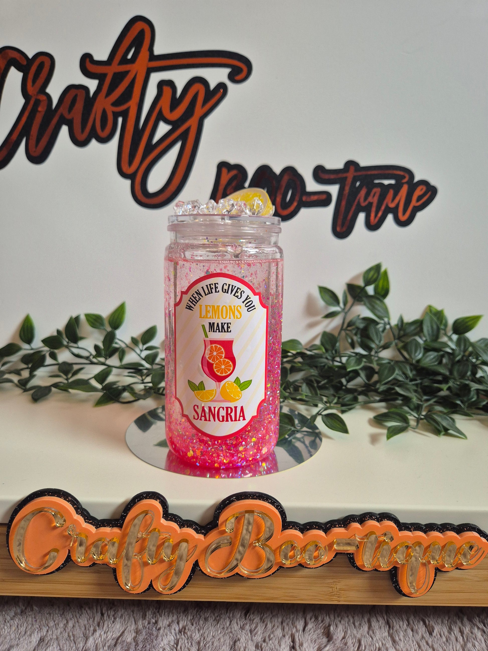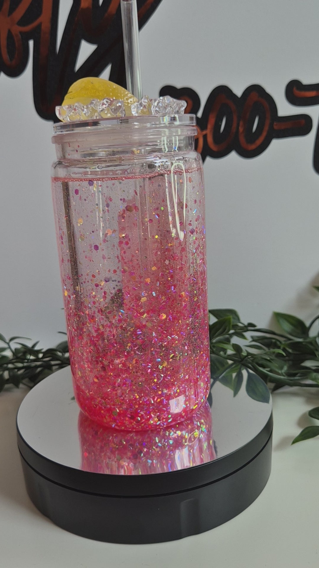 16oz snowglobe acrylic cocktail cup. Comes with detailed lid and straw.